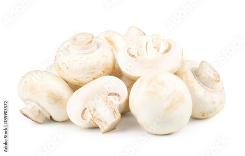 Fototapeta premium Handful of champignons on a white background. Clipping Path