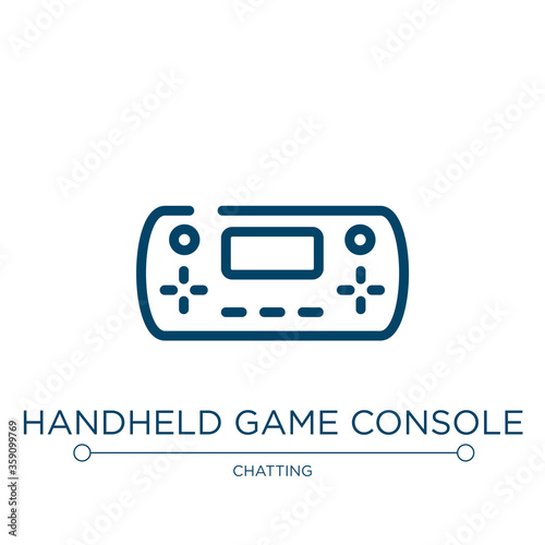 Obraz premium Handheld game console icon. Linear vector illustration from smart devices collection. Outline handheld game console icon vector. Thin line symbol for use on web and mobile apps, logo, print media.