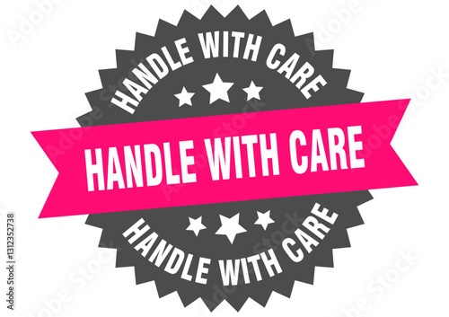 Obraz premium handle with care. handle with care round pink label isolated on transparent background