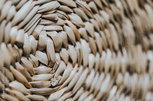 Fototapeta premium Handmade authentic straw round basket macro closeup geometric texture.