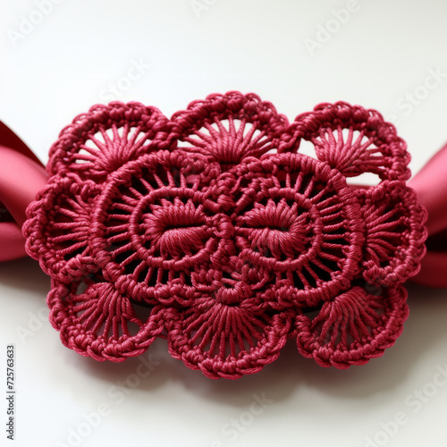 Obraz premium Handmade Crimson Macramé Lace Ribbon on White Background