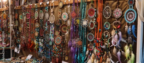 Naklejka premium Handmade Jewelry with Price Tags at the Fair Featuring Dream Catchers