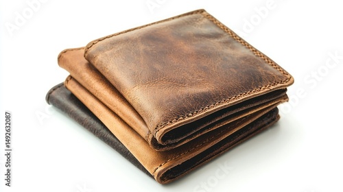 © phy, Obraz premium Handmade leather wallets isolated on white background