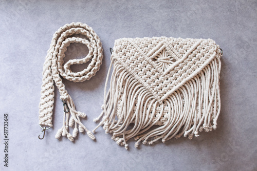 Fototapeta premium Handmade macrame cotton сross-body bag. Eco bag for women from cotton rope....