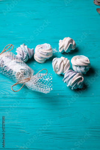 Naklejka premium handmade marshmallow in the form of roses close-up.