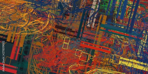 © Jakub, Obraz premium Handmade surreal abstract pattern. Modern artistic canvas. 2d illustration. Texture backdrop painting. Creative chaos structure element.