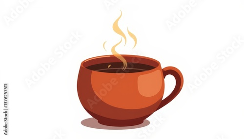 Obraz premium Handmade terracotta mug with herbal tea and steam, warmth and comfort