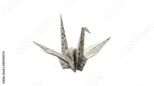 © Tadeu, Obraz premium Handmade traditional Japanese origami paper crane art symbolizing peace hope luck isolated on transparent background