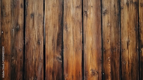 © pinporn manosri, Naklejka premium Handmade wooden plank wall with unevenly cut pieces, natural splits, and visible knots, enhancing the rustic charm.