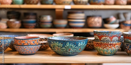 Fototapeta premium Handpainted Ceramic Bowls Collection: Exquisite Artisan Craftsmanship
