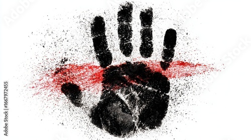 Fototapeta premium Handprint in Red and Black with Grunge Texture on White Background
