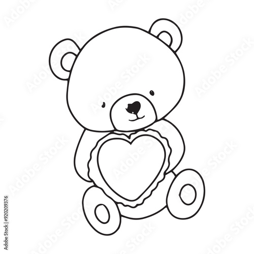 © Griyolabs, Obraz premium handrawn black line kawaii baby bear with variant activity gesture. coloring book character bear. element stock bear