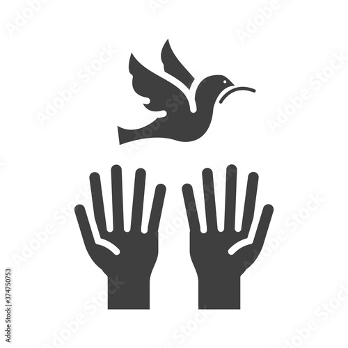 Obraz premium hands and dove with olive branch human rights day, silhouette icon design