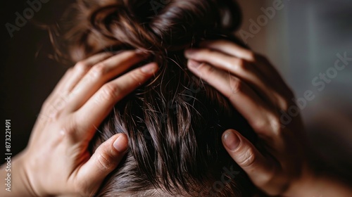 Naklejka premium Hands arranging hair on the head