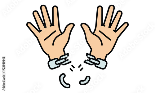 Fototapeta premium Hands Breaking Free from Broken Handcuffs Icon