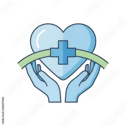 © Matloob, Obraz premium Hands cradling a heart with a medical cross symbol