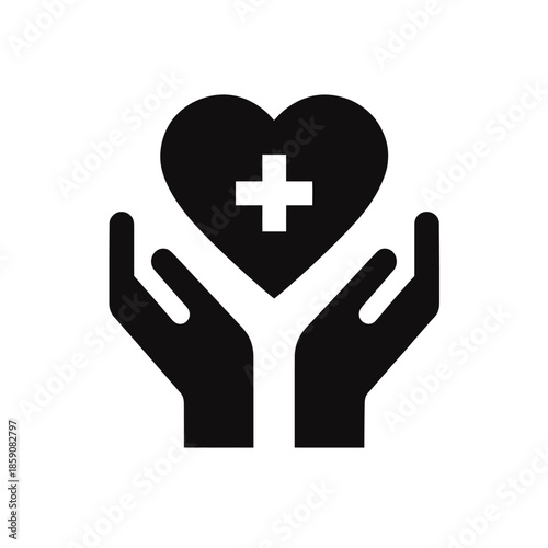 © jonny, Obraz premium Hands cupping heart with cross symbolizing healthcare and support
