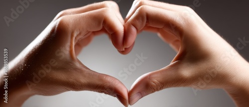 Fototapeta premium Hands Form a Heart Shape Against a Gray Background Expressing Love and...