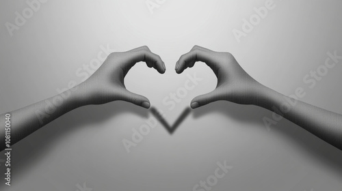 © russcom, Obraz premium Hands forming a heart shape casting a shadow on a plain background in black and white