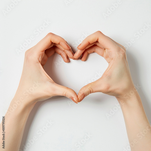 Fototapeta premium Hands forming a heart shape on a white background, representing love and unity.