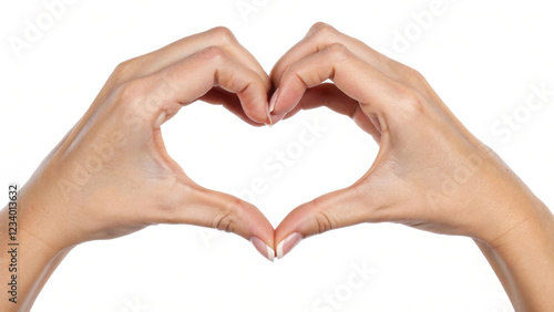 © mangolovemom, Obraz premium Hands forming a heart shape, symbolizing love, affection, and connection, against a plain white background.