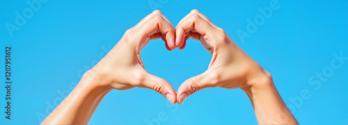 Fototapeta premium Hands forming heart shape against blue sky
