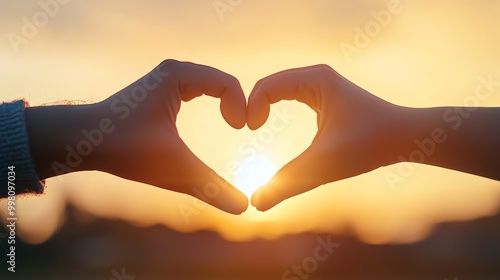 © ธนากร บัวพรหม, Obraz premium Hands forming heart shape at sunset