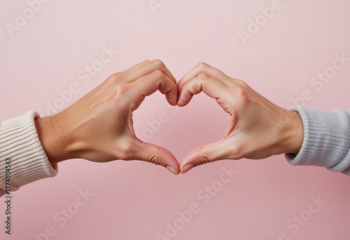 Obraz premium Hands Forming Heart Shape on Pink Background