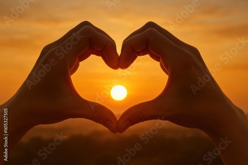 Obraz premium Hands Forming Heart Shape with Sunset Love, Warmth, and Connection in Nature