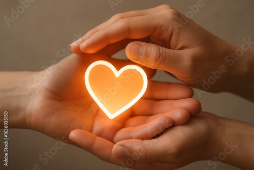 Fototapeta premium Hands gently cupping a glowing heart symbol