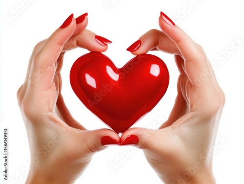 Fototapeta premium Hands gently holding a shiny red heart symbol