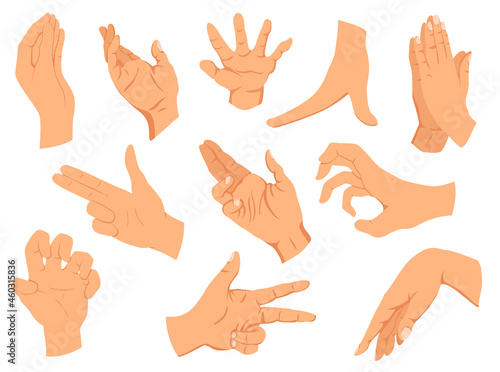 Obraz premium Hands gestures. illustration set hands in different interpretations, showing...