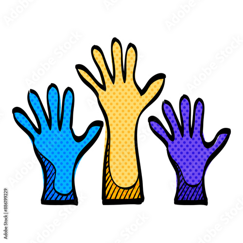 © puruan, Fototapeta premium Hands halftone icon hand drawn color vector illustration