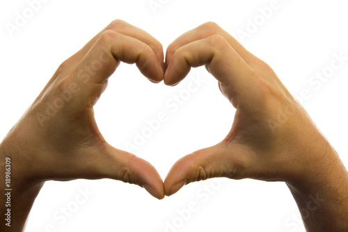© Sandra van der Steen, Fototapeta premium Hands heart shape over white background