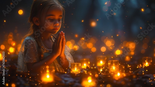 Fototapeta premium Hands hold a beautifully ornate lantern aloft, amidst a backdrop of vibrant...