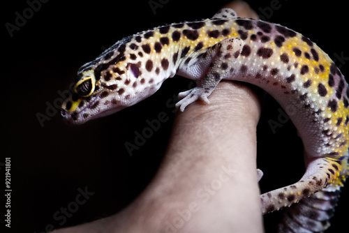 © FeriFerdinan, Obraz premium Hands holding a leopard gecko