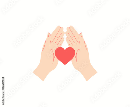 © NguyenThi, Fototapeta premium Hands holding a red heart, love donation concept