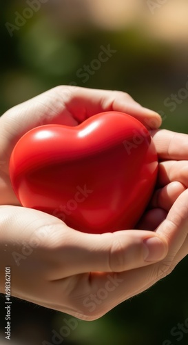 © Imam, Obraz premium Hands holding a red heart symbol representing love and care.