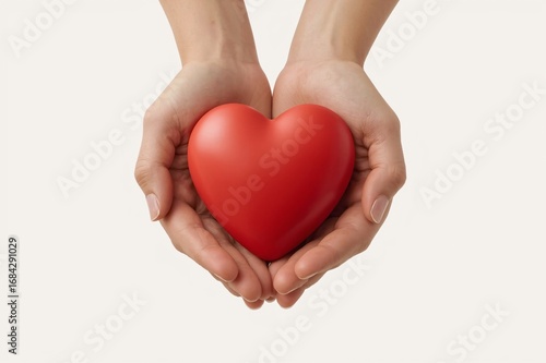 © Ficky, Fototapeta premium Hands holding red heart, studio shot, white background, love concept