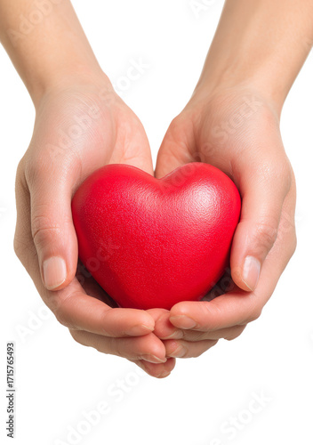 © Pangestu, Fototapeta premium Hands Holding Red Heart Symbol in Close Up on White Background