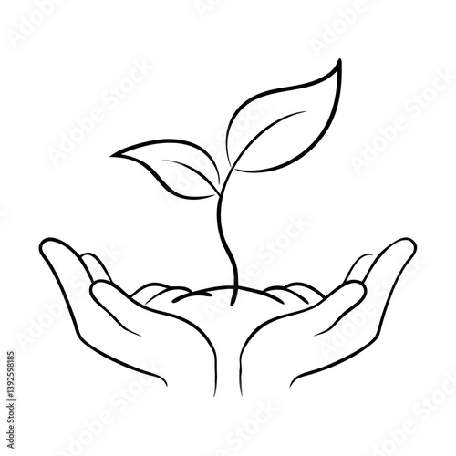 © Good Co Vision, Obraz premium Hands holding young plant in black and white line art