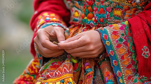 Obraz premium Hands in traditional vibrant attire, showcasing cultural heritage and craftsmanship