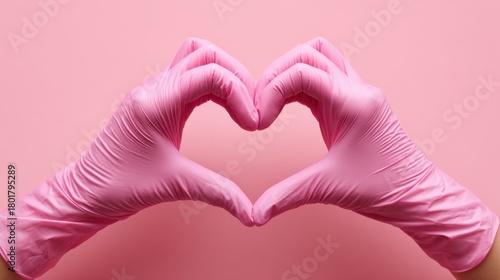 Fototapeta premium Hands make heart shape with gloves