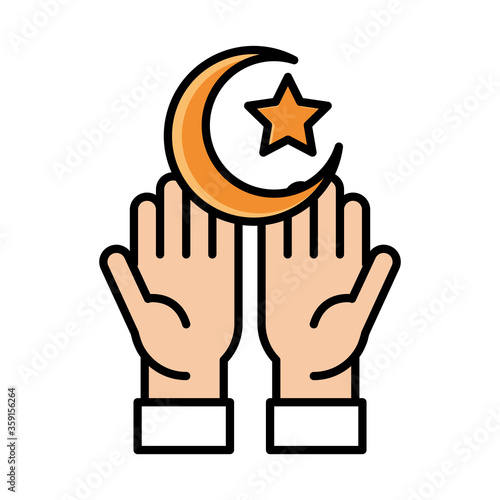 Fototapeta premium hands moon and star eid mubarak islamic religious sacred line and fill icon