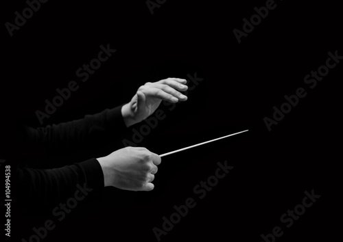 © furtseff, Fototapeta premium Hands of conductor on a black background in black and white