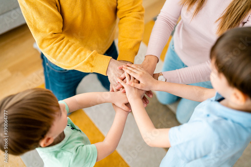 © NDABCREATIVITY, Obraz premium Hands of family together, unity, trust and peace concept