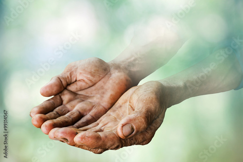 © Panya, Fototapeta premium hands of old man asia on nature background.