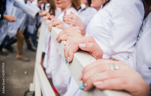 © sharshonm, Fototapeta premium Hands of young people in the nature