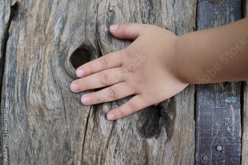 © Apiwut Sookkasame, Obraz premium hands on wooden background