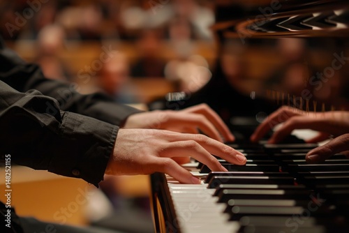 © Tang, Obraz premium Hands Playing Piano on Stage During a Live Music Performance